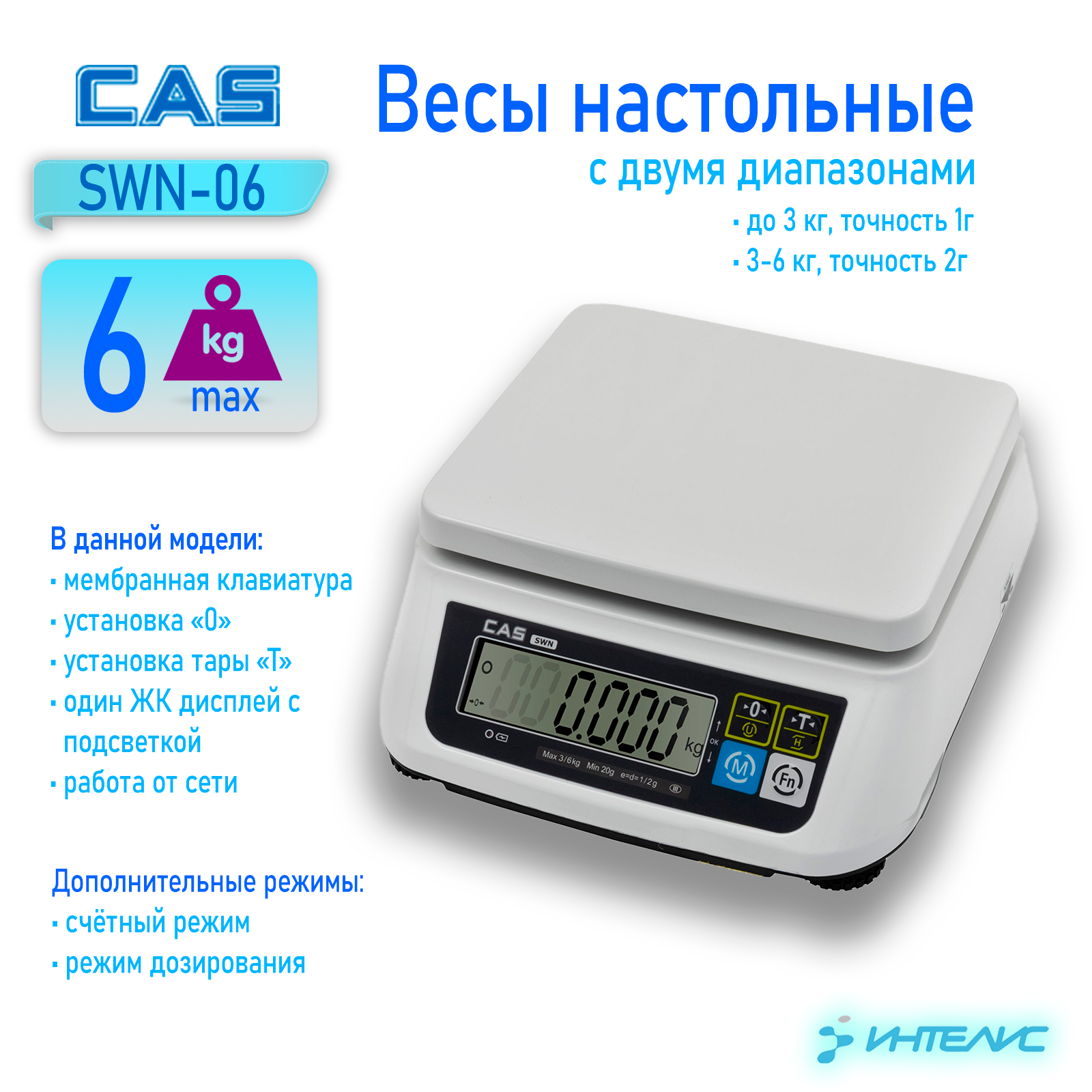 Простые и надежные продуктовые весы CAS SWN 06 эконом-класса для простого взвешивания являются лучшим соотношением по критерию цена-качество (среди конкурентов в сегменте фасовочных весов для магазинов, рынков и порционных весов для предприятий общепита).