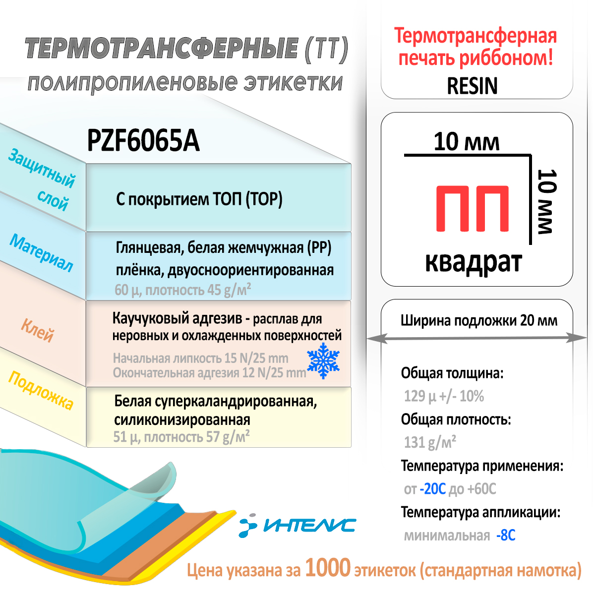 | PZF6065A (#20) | ПП (полипропилен) | Каучуковый расплав- для неровных и охлаждённых поверхностей | от -20°C до +60°C / -8°C ❄️ | RESIN |
