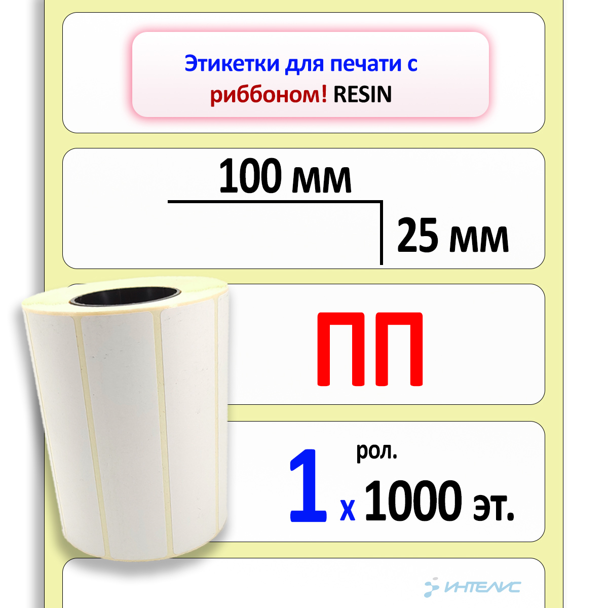 Печать термотрансферных этикеток 100х25 мм осуществляется путем термопереноса, при котором термоголовка принтера нагревает термотрансферную красящую ленту (риббон), с которой краска попадает на этикетку. Термотрансферные этикетки 100x25 мм применяются для печати непосредственно на производственных предприятиях, в торговле, в транспортных компаниях, на складах, в здравоохранении и везде, где требуется качественная долговечная печать на этикетках.