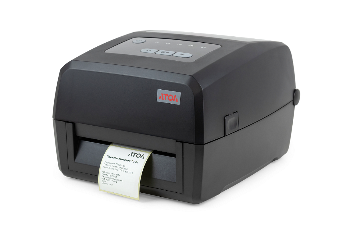 АТОЛ ТТ44 – это настольный термо- и термотрансферный принтер этикеток коммерческого класса. Можно подобрать версию принтера под потребности бизнеса. Может использоваться для изготовления этикеток, табличек, идентификационных браслетов, бирок в розничной торговле, легкой промышленности, медицинском обслуживании, транспорте и логистике.