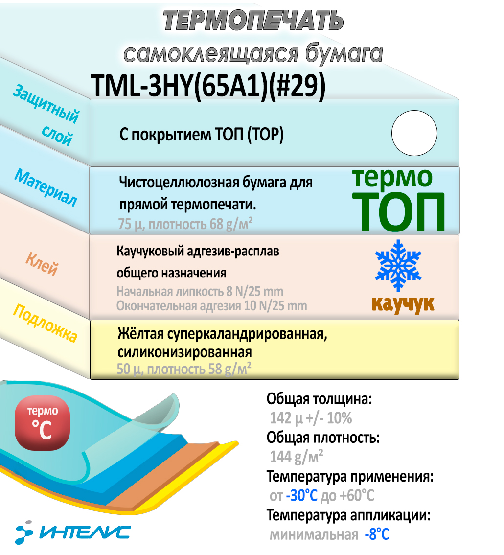 Термобумага предназначена для использования в термо-печатных системах. ТОП покрытие обеспечивает превосходную устойчивость в воздействию влаги, жира, масла, спирта и т.п. Стандартные применения: печать этикеток со штрихкодами для этикетирования упакованных продуктов, применяется для оборудования используемого в розничной торговли.