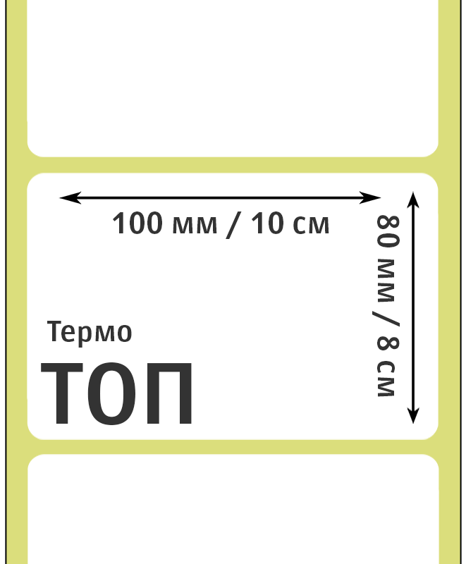 Печать термоэтикеток 100х80 мм осуществляется путем прямого нагрева выборочных точек движущейся этикетки термопечатающей головкой принтера. Термоэтикетки 100x80 мм применяются для печати непосредственно на производстве и упаковке продуктов питания и промышленных товаров, в супермаркетах на автоматических этикеточных весах и т.д.